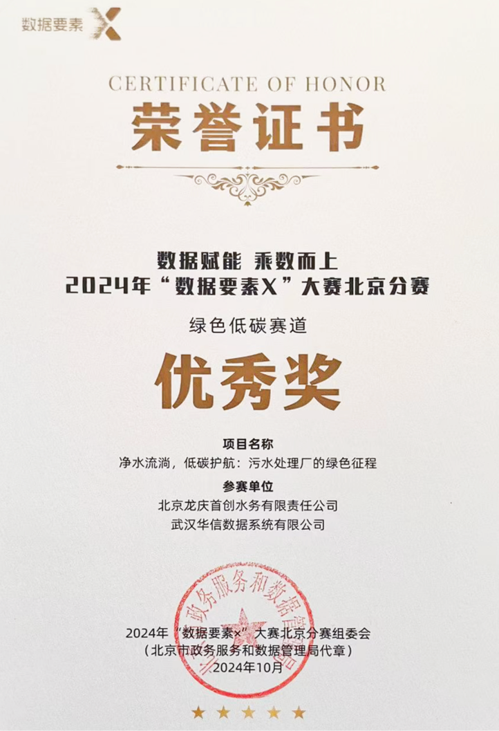 近期,由国家数据局等部门举办的首个聚焦数据要素开发应用的全国性大赛 ——2024 年“数据要素 x”大赛正式发布获奖结果。武汉EMC易倍(中国)数据系统有限公司与北京龙庆首创水务有限责任公司合作的项目“净水流淌,低碳护航:污水处理厂的绿色征程”在高手如云的北京分赛区脱颖而出,荣获优秀奖。